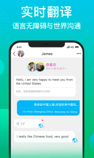 国际即时多语翻译社交APP,帮你全球交友,认识来自世界各地的人,无障碍打视频电话、语音沟通,100多种语言及时快速翻译成中文,跨国交友就是那么轻松。