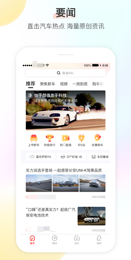 每天都会给我们带来汽车行业的一些新资讯和内容,也曝光过不少新车型的消息,软件还带有齐全的车型库,直接根据品牌、上线时间进行筛选或者是直接搜车型就可以快速获取,还能够将多款车型放在一起做配置对比。