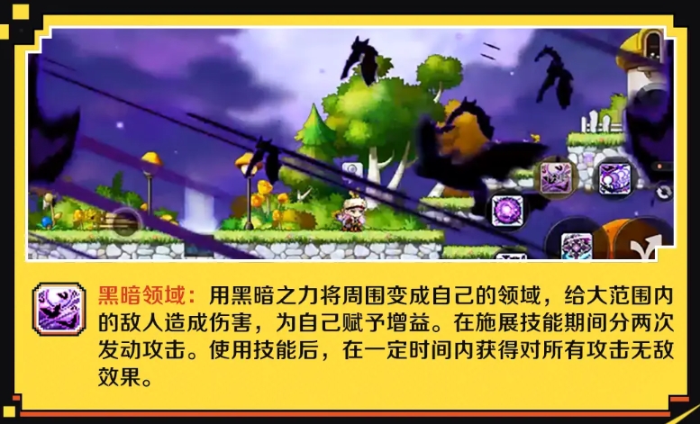最后一个核心技能是“黑暗领域”,这招能够在周围创造一个领域,领域内敌人会受到伤害,自己则会获得增益,相当于此消彼长,击败敌人的机会因此蹭蹭上涨,此外,该技能会在施展期间发动足足两次攻击,发动完毕后夜行者自身还能获得无敌效果,强度非常的逆天!