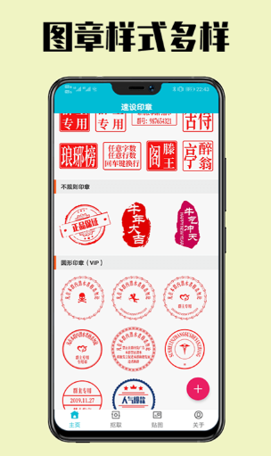 一款手机上难得一见的图章创作工具,带有多种的类型和样式,可以非常方便地进行文字修改或者是插入图标,这款软件用来设计logo也是比较合适的。