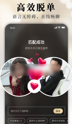 一款非常适合年轻人使用的单身交友工具,软件会根据一些测试的结果为我们进行分类,可以快速在同城匹配到契合度比较高的用户,也能够查看同城动态,看看附近的用户分享了哪些新鲜事儿。