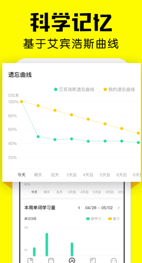 带有科学的记忆曲线模式,对生词出现频次、数量以及时机都恰到好处地把握,从而在反复的练习中加深记忆。