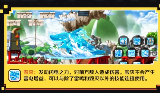 技能方面,奇袭者最为重要的核心技主要有三个,首先是“毁灭”,该技能可以通过发动闪电之力来对前方敌人造成伤害,该技能的伤害加成非常高,而且范围也超大,召唤出的一条鲨鱼能够直接吞没掉大多数敌人,并且这招也给予了奇袭者较大的操作空间,利用它可以随便衔接除了“雷鸣”和“毁灭”以外的其他技能,连招的顺滑程度因此大大提升!