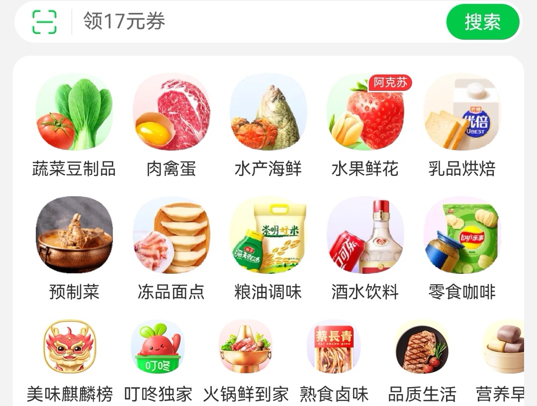 品质生活,从盒马开始,各类海鲜、水果、零食等产品应有尽有,专为消费者所打造的一站式生鲜购物平台,除了有新鲜的海产品、水果蔬菜外,还提供预制菜品,解放大家的双手。