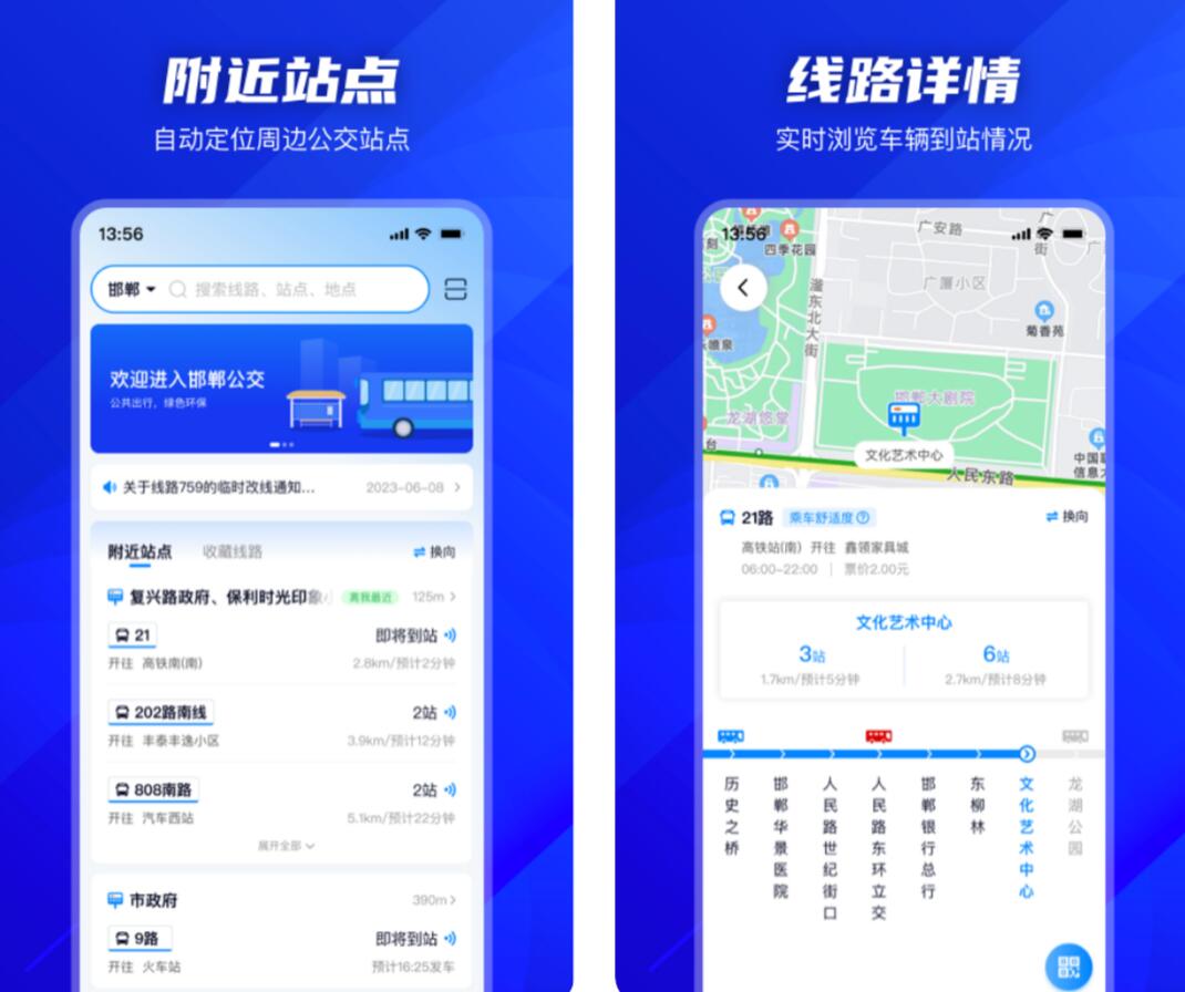 在软件的首页,会显示你收藏的线路以及你附近的公交站点,某条线路进行调整公告,也会在软件中第一时间进行展示,方便你及时更改出行方案。