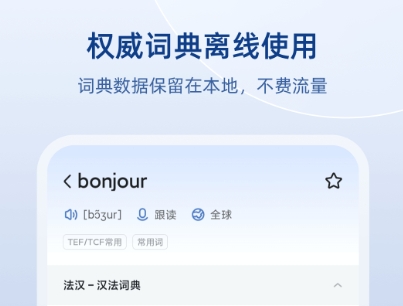 多个不同场合下的法语学习,它能为大家带来高效且便利的学习模式,针对没有基础的朋友也有许多的教学方案,是大家的随行助手之一。