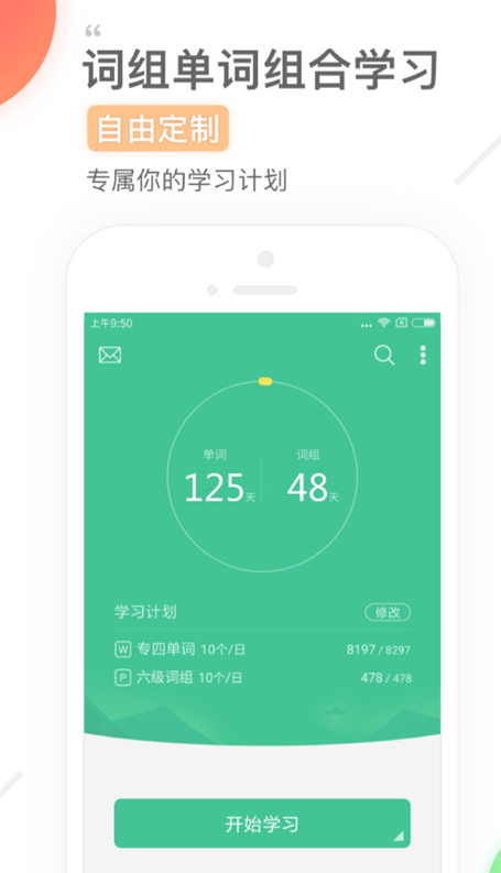 这款软件主要还是针对雅思考试的对应核心词汇,会根据备考剩余时间自动进行合理的强化学习安排,并且周期性进行测试来完成题库调整,有目的性地进行训练才会有更好的效果。