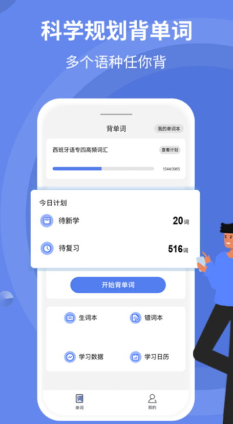 提供了多门不通外语的学习课程,选择范围更广,能够根据每日学习时间以及考试周期来进行合理规划。软件会通过练习的记录自动整理生词本和错题集,帮助我们巩固知识。