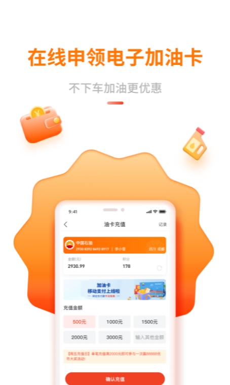在中油优途中可以免费领取电子加油卡,推出了全方位的路途生活应用,在旅游过程中遇见车子没有油可根据提示开到加油站地点,无需下车直接就能进行加油。