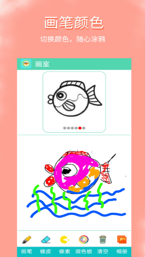 一款专为儿童设计的涂鸦填色工具,在填色模式中大家可以选择动植物、食物、生活用品等多种类型的底板并且利用不同工具进行涂抹,帮助孩子们训练色彩敏感度和审美。