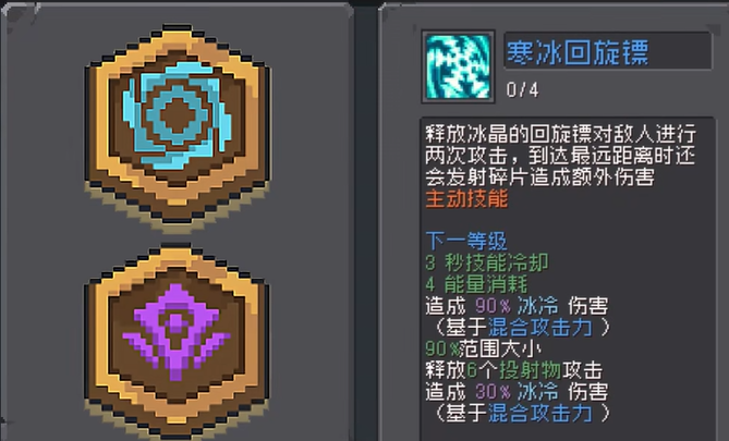 上方给大家简单的解读了一下基础的加点方式,现在主要是给大家解读一下游戏中的技能加点玩法,一些技能的强度非常吃技能点数,虽然属性加点有比较多的方案,但是技能加点一定是固定的,大家优先升级【寒冰回旋镖】这个技能非常的特殊,而且可以很好的清理小怪,可以释放一个回旋镖对敌人进行两次攻击,而且在回旋镖释放的最终位置的时候,还会释放一次碎片攻击造成额外的的伤害!