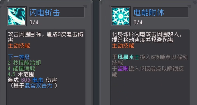 这个技能搭配上冷血被动效果,有这非常神奇的作用,而且还会将这个流血效果,直接变成冰属性伤害!第二个就是升级【闪电斩击】这个技能同样属于一个释放后有额外的伤害,在风暴骑士攻击周围敌人的时候,可以在周围召唤出三道闪电,范围还算不错,而且攻击伤害还可以与元素石双刀这个武器刚好混合!