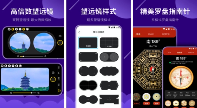 这个软件上的功能不仅帮助你在黑暗环境下能够高倍数远距离的看清远方的事物,同时为用户提供罗盘的功能。很多年轻人可能会选择在山上看星空或者是流星雨,在黑夜的环境下要自己的地理位置防止迷路。有了这个软件的话既能看星星也能找准方位。