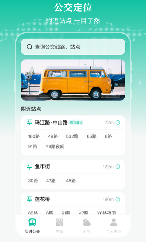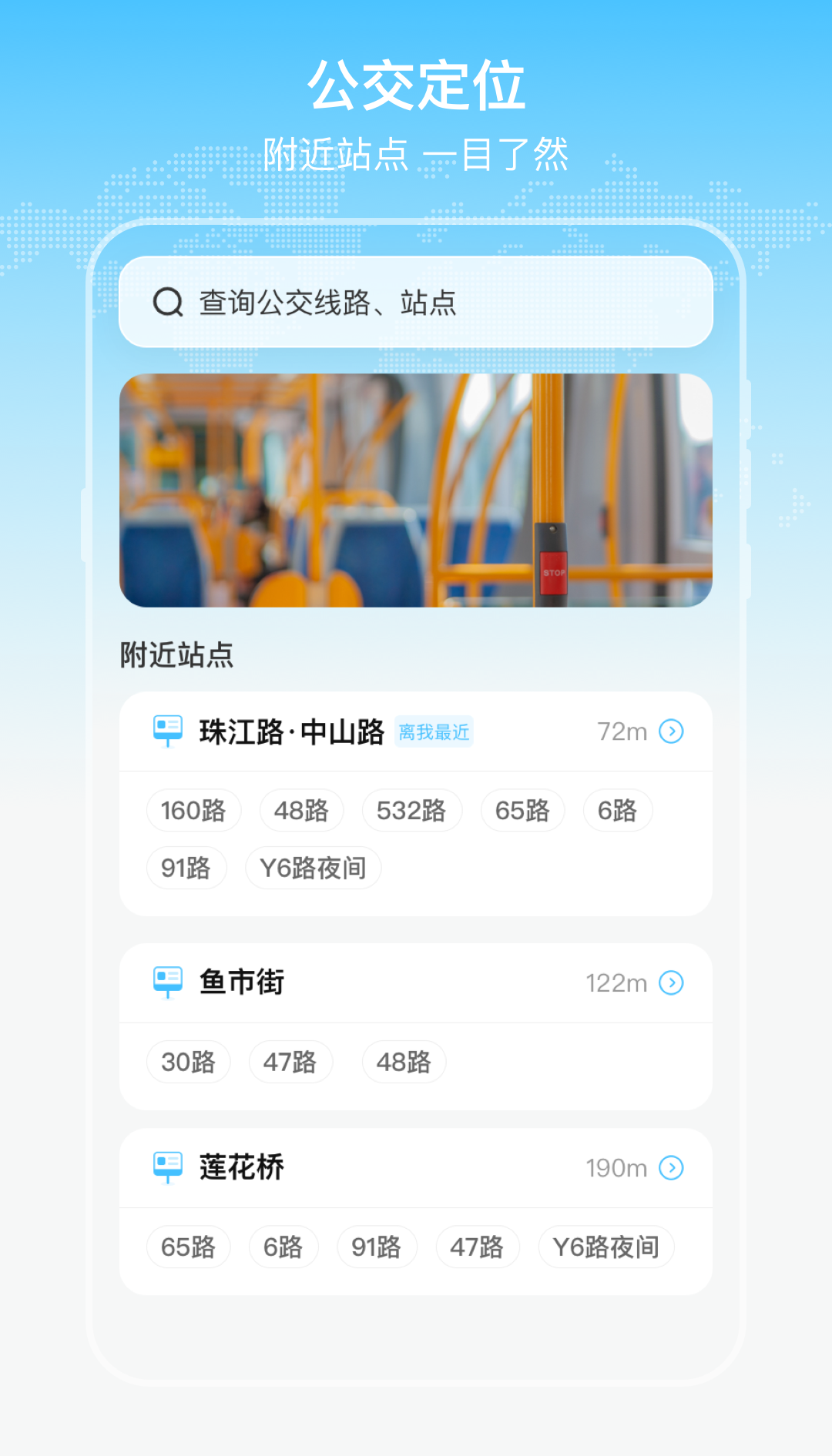 公交出行的好帮手,通过定位就能够快速查找到你周围的一些站点,以及每辆公交车所要到站的时间,实时查阅动态信息,这样你就可以提前规划好出行方案与路线。