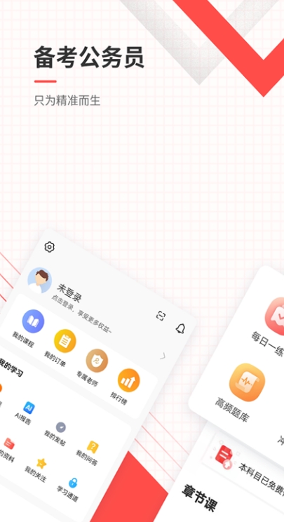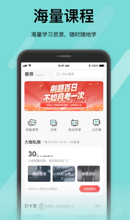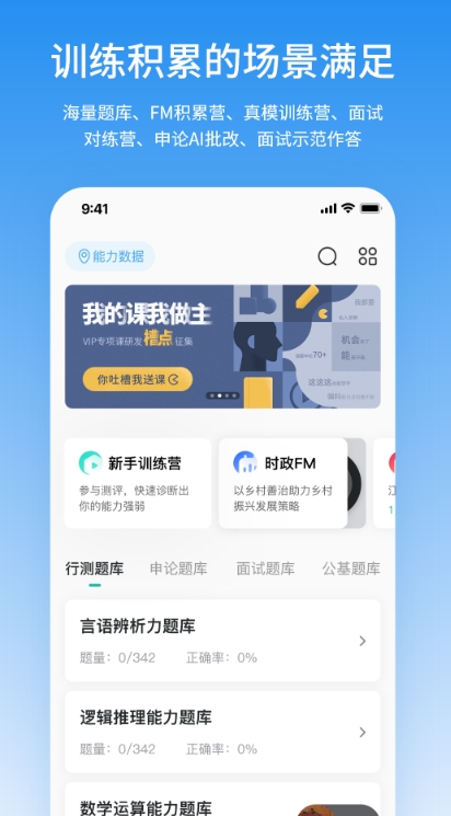 这是专门为线上考公务员人群所提供学习、训练、交流的地方,里面拥有海量题库,FM积累营,真实模拟营等等多种项目,大家可以随意选择。