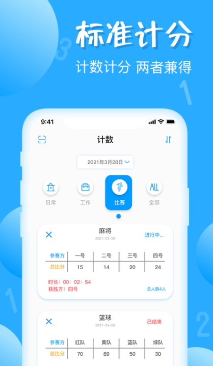 这是一款超级实用的软件,专门用来记录各种比赛的分数!只要轻轻一点,就能搞定一切,简直太方便了!通过这个应用,你可以轻松地添加比赛,记录比赛的时间、比分、队伍名称等信息。而且,你还可以把比赛结果保存到相册里,方便随时分享哦!这么简单易用的设计,当然可以满足各种计分需求啦。想象一下,在比赛现场,你可以随时拿出手机,用标准计数器记录下每一个精彩的瞬间。不仅如此,你还可以轻松地分享比赛结果,让更多的人了解比赛的精彩之处。