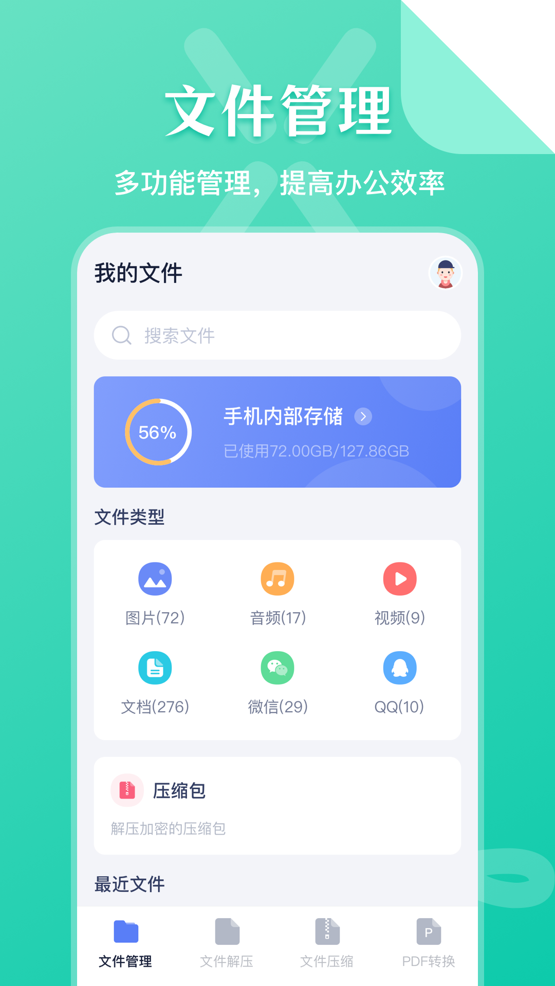 随着日常生活中大家对手机使用越来越频繁,手机中产生的各种文件种类也越来越多。这时候大家可以使用文件管理,但是这款软件可以帮助对手机中的文件管理分类。是以手机文件管理,文件编辑,文件压缩为主要功能的文件管理助手。