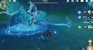 boss将水元素凝聚为战锤,并从左侧向玩家方向连续使出两到三次挥击并接续一次重砸,这个技能算是boss近身技能中威胁较大的一个,发动速度较快,段数多且伤害较高,这个技能建议直接向后闪避躲出范围,或者先绕boss的左手方向在下砸时向后闪避亦可,如果想要追求伤害,通过无敌帧较长的元素爆发来进行躲避亦可,但大多数元素爆发无敌帧并没有那么长,所以最好还是向后闪避