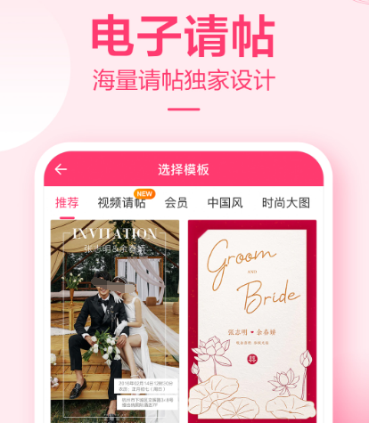 在如今的生活当中,不管是公司开业还是新人结婚,都需要制作请帖,更有一些人制作的是电子请帖,毕竟如今是一个互联网的时代,电子请帖更加的方便,那么制作电子请帖的app有哪些呢?今天小编就和大家详细解读一下。可以满足众多人群的需求,既可以制作婚庆的请帖,也可以制作开业典礼等等各种请帖。