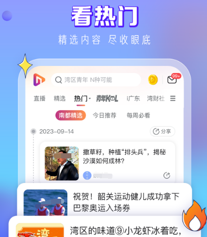 在这一个可看视频的软件当中,主要分享的就是有关于广东的热门视频,既适合刷视频也适合看热门的内容,其中包括直播精选热门以及有关于财经等等方面的,对于喜欢看广东新闻的人群来说,这里面的内容非常的丰富,让人更了解广东人的生活。