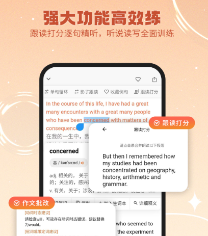 在软件里既能够通过看电影的方式来学英语,同样也可以通过刷视频或者是听歌曲的方式来学习,在记背单词的时候,通过场景联想的方式可提高记忆效果。