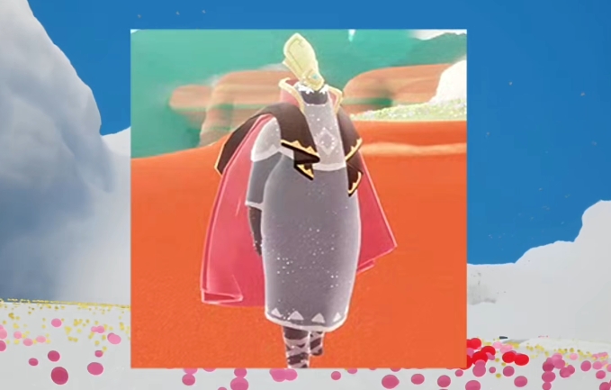 然后再是下图这个王后先祖,这应该是这次光遇联动中最好看的一个了,尤其是她那金色的头饰,看上去非常的精致美丽,并且身上的红色长裙和脖子的项链也都尽显尊贵优雅。
