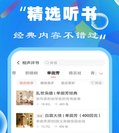 这一个免费合集软件主要是针对听书,看小说的里面,不仅包含了各种各样的小说内容,同时也能够满足听书的需求。具备海量丰富的资源,既有经典的内容,也有最近一段时间刚更新的,在不想看书的时候,通过有声小说来听这一种方式也能够释放双眼,释放双手,声音特别的好听。可根据需求来选择一个自己喜欢的声音。