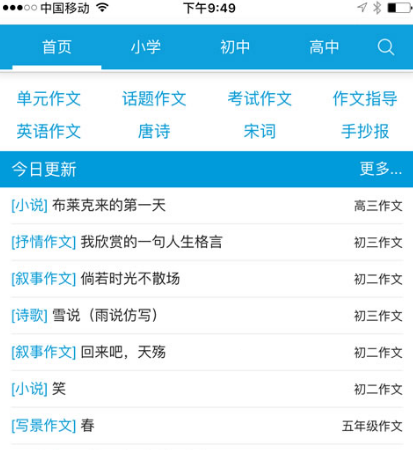 对于正在读书的人群来说,写作文是非常重要的,因为在语文考试当中作文占很大的分数,该软件就是专门为了中小学生写作文而设置的。它属于一个免费的作文合集,拥有包括一到六年级以及小升初等等各式各样的作文,可通过多读一读好的作文来提升自己的写作水平,使用完全免费。