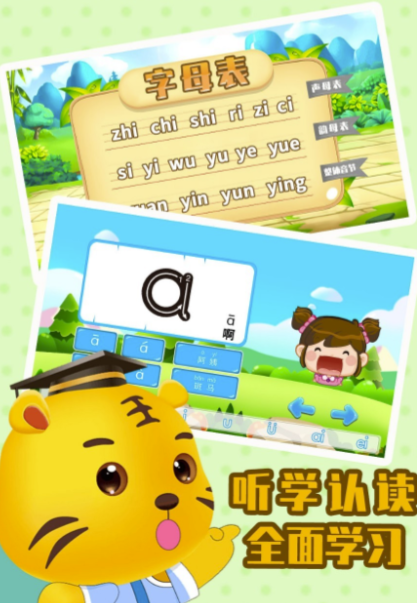 针对学龄前的小朋友推出的学习应用软件,这里提供精准的阅读模式,这样孩子就可以跟着软件练习正确的发音,正确的认识每一个拼音。详细的字母还可以进行有趣的互动模式。