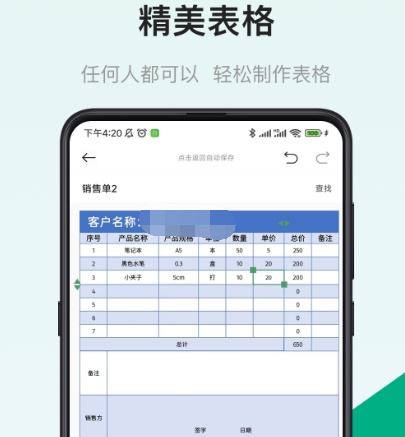 电子表格快速制作,小巧轻便设计简洁,是该软件的优点支持多设备同步,每个小伙伴打开之后可快速制作,没有任何难度。