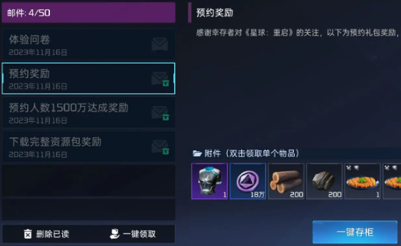 星球重启这款的最新下载预约链接给玩家们准备好了,大家现在去进行下载预约的话,是可以免费获得大量的基础材料的,如一些建造所需要的“木材”“石头”,可以减少玩家们在野外进行采摘的时间;同时还可以获得游戏中的联盟点数188888点;