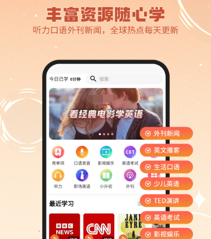 如果幼儿学要学习英语的话,主要就是以培养英语兴趣为主,该软件不仅同步英语课程,能够在学习英语的时候满足听说读练等等内容,还能够进行一个很好的启蒙教育。