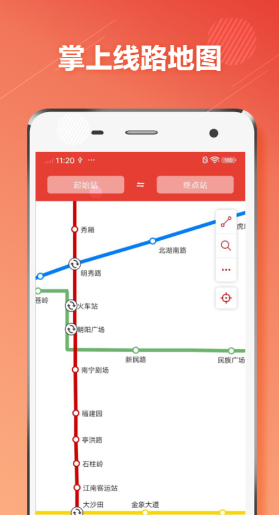 带有详细的掌上线路图,可以自己选择起始和终点站来查询换乘方案,软件还会直接显示各个线路的核载情况,从而帮助我们避免拥堵,选择更加合理的出行方案。
