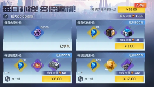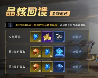 游戏中的首冲礼包主要是有两个,一个是一元人民币的首冲礼包,可以获得十个晶核,十个原晶,加上养成材料自选箱一个以及原晶好运箱一个,这个首冲的奖励是性价比还是非常高的,而且如果大家运气好的话,是可以开出很多原晶的;