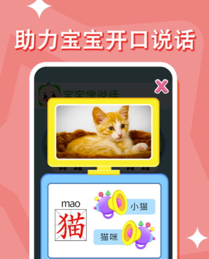 超级适合学习说话的宝宝是使用,通过卡通动画的方式让孩子认识更多的水果,动物,以及日常生活的一系列用品,精准的发音和寓教于乐的教学模式让孩子从此爱上学习。