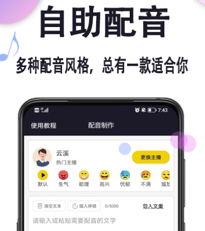 只要将文字输入其中即可转换成为语音,简单几步就能打造出非常个性的广告语,超市促销,商场甩卖都可利用这款软件傻瓜式操作一键合成,简单有高效优质优良,拥有非常高端的音频设备,也有各种优质的背景音乐,这些都能够完美的搭配在一起,配音大师精心挑选好声音,让你的配音更极具吸引力。
