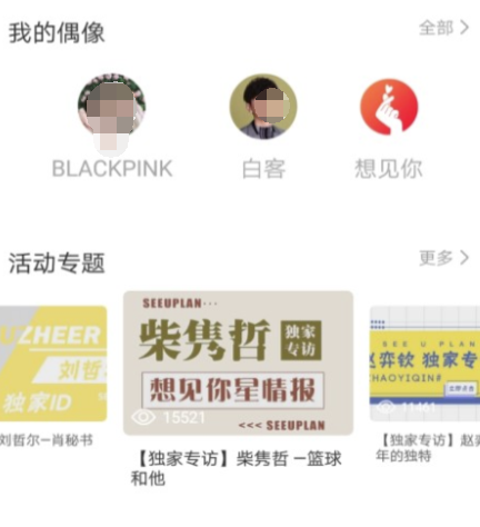 各种你喜欢的艺人信息将一手掌握,任何的更新内容都会第一时间的推送给你,你可以在这里跟其他的伙伴一起畅谈自己的爱豆,分享和推荐,各种活动满足你的小小心愿。