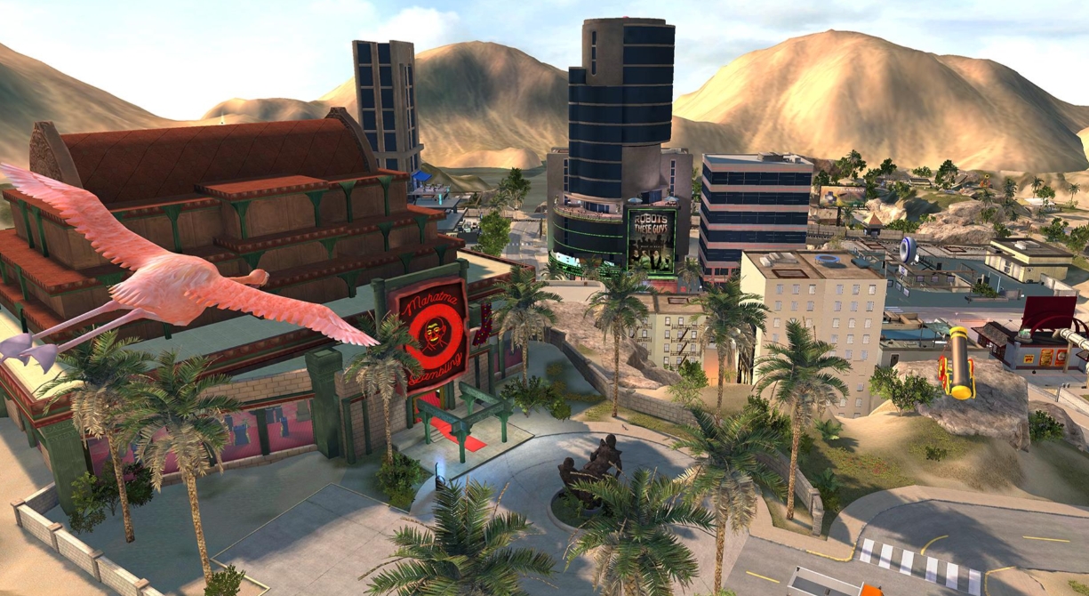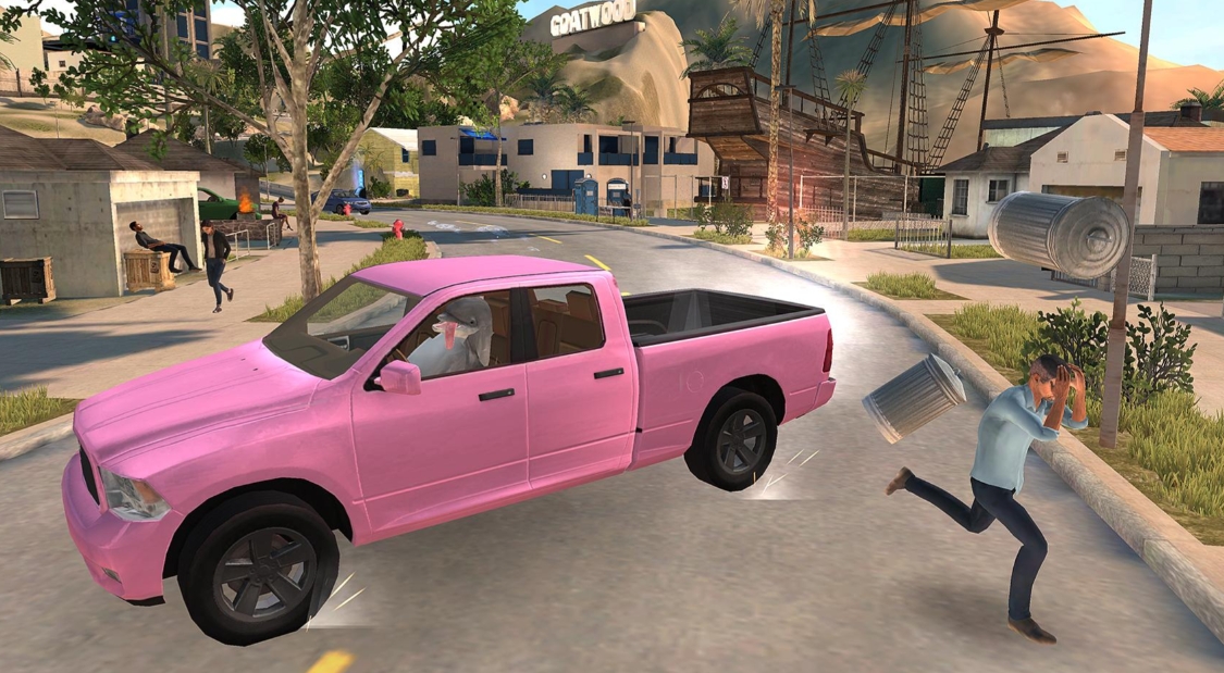 故事发生在一个热带风格很明显的城市之中,这里有红色的火烈鸟展翅翱翔,也有各种挺拔的椰子树矗立在路边,同样的,里面的各种功能性建筑也十分齐全,而作为主角的你,将扮演一只山羊,尽情的在这城市中驰骋。