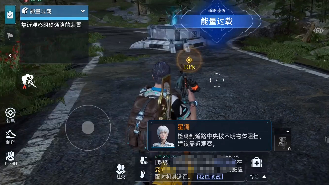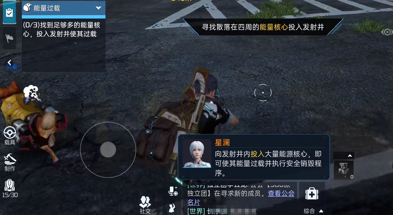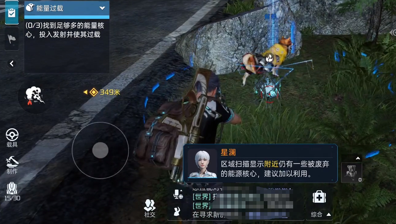 首先触发该任务的时候你会收到一个道路疏通的提示,而如果要疏通挡路的设备那么你就需要找到附近的能量核心,它这个任务和那些被元素缠绕的藤蔓不一样,需要投入多个能量核心才能完成。