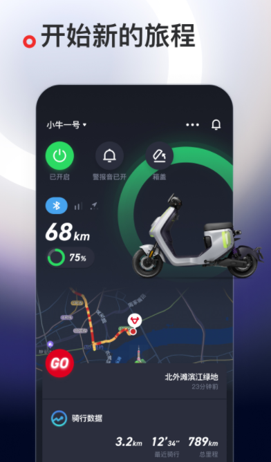 专门给小牛电动车用户制定的智联系统,在手机上即可查看电动车当前的电量状态以及,即便说电动车不在身旁,也能够看到他的位置,还能开启轨迹记录模式,帮助你记录今天骑车前往到的任何一个地方,如果说想要线上升级配置或是购入其他产品的话,还有专门的小牛电动商城。