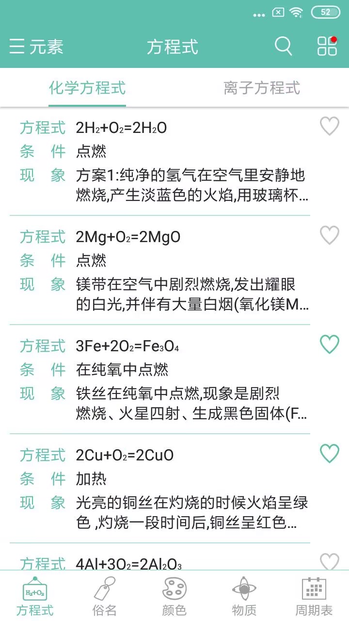化学方程式这个软件是一款能够让我们快速的查询到一些常用的方程式的书写以及发生条件以及现象内容的App软件,在这款软件上我们能够获取到更多关于方程式内容的指导,并且借助这个软件,大家还可以了解一些方程是背后的实验内容,可以让我们了解不同的实验步骤以及实验发生过程中的真实场景视频,可以让我们看到更真实的画面。