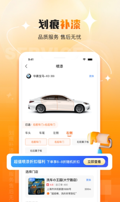 这个软件上提供的服务是连锁店的形式,在软件上购买了保养的内容之后可以选择离你最近的连锁店内使用。同时可以先自行预约这样到店之后就能直接开始。同时这个软件上会推出很多的保养套餐,按需求来选购。