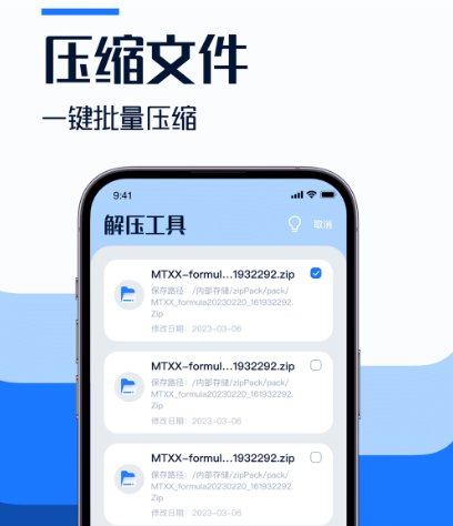 在这一个专门进行解压的手机软件里,它既能够进行文件的压缩,还能一键批量压缩,也就是说不管自己要压缩的文件有多少都是没有问题的,非常的实用。还支持文件管理文件查看,在解压文件的时候用有多种方式轻松解压。
