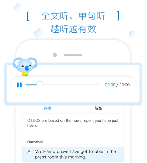在这里大家能去进行智能的真题训练,包括听力的学习以及历年的真题学习,音质上也非常的高,让大家能沉浸其中,除了能释放学习的压力外,还有多元化的场景听力内容以及模拟考试等功能为大家开放。