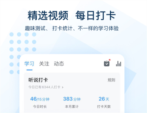它是一款专注于年轻人学习的英语平台,在里面大家能快速的提高自身的英语水平,同时提供了晨读、音标以及配音等多种不同的功能,让大家能自由的使用,此外还有海量的听力内容给到各位,让用户能轻松的解锁并使用。