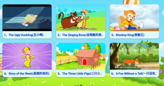 由趣味情景动画与专业的基础知识相结合在一起,让孩子在学习时有趣有效又简单。其中有亲子互动、童话故事、国学课堂等等。