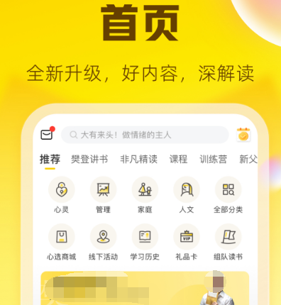 这是以讲解为主的app,可在短时间内了解一本好书了解书中的精华。另外还涵盖了众多非常优质的课程,以及训练营等多种不同的板块。