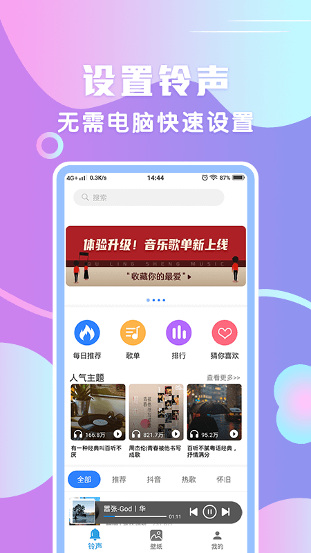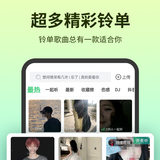 以上就是手机铃声免费下载app的推荐,这些软件都很好用,上面的音乐资源都很多,小伙伴们可以根据自己的听歌风格去寻找适合的音乐,做自己的手机铃声,当然如果有自己喜欢的歌曲可以直接进行歌曲搜索,然后简单的编辑音乐剪裁就可以了。