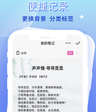 随时随地想记就记,作为简单又方便的备忘记事本,无论是写事写日记还是记账,只要有灵感,都可以打开这款软件随手记录下来。