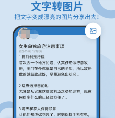 操作流畅,使用方便,随时随地记录工作及生活,同时也可以为我们提供图片生成功能,帮助用户将记录的文字转换成为图片,即便长文字也能够轻松转换。